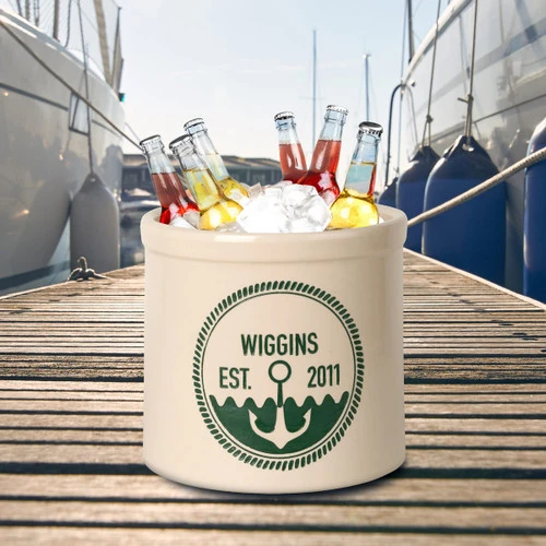 Accent your nautical kitchen with the Anchor Personalized Established Crock – Green. This coastal kitchen decor features an anchor and personalized text. Can also be used as a planter for a beautiful addition to your home.