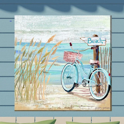 Give your poolside a new coastal look with the Beach Bike Outdoor Wall Art. This outdoor wall art features a bicycle on a sandy, sunny beach.