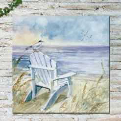 Add style to your pool with the Beachside Chair & Birds Outdoor Wall Art. This outdoor wall art features an Adirondack chair on the beach featuring seabirds for oceanside flair.