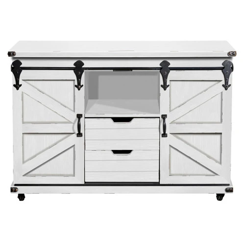 The Bradford Open Center Cabinet – White brings coastal style to your kitchen with a classic look with a natural white finish and black hardware.