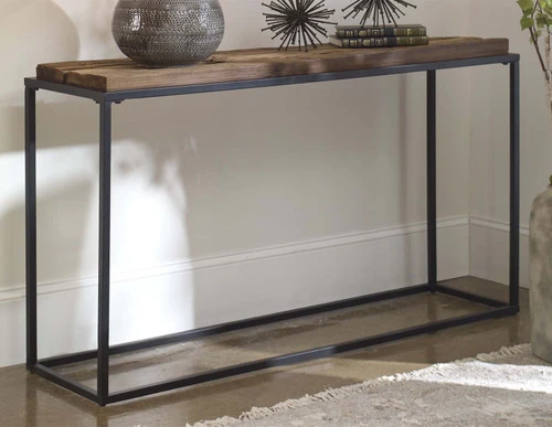 The rustic Briarwood Console Table features an iron frame in black topped with natural reclaimed wood. With its minimalist design it effortlessly blends style and functionality.