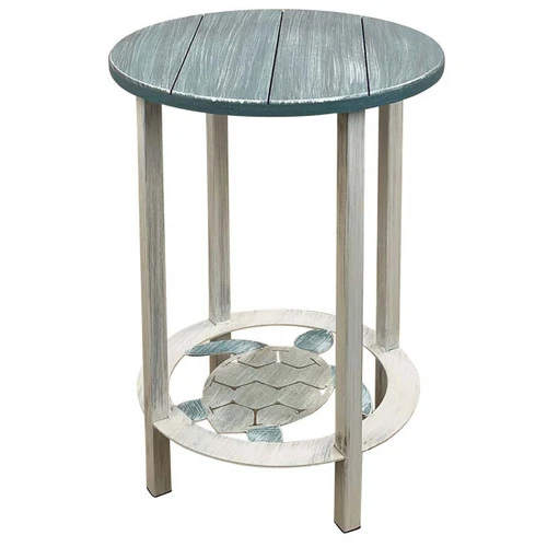 The Coastal Turtle Round End Table is a charming and functional addition to any coastal-inspired home decor, perfect for holding a lamp or plant in your living room or bedroom. With its natural wood finish, this end table brings a touch of seaside vibes to your space.