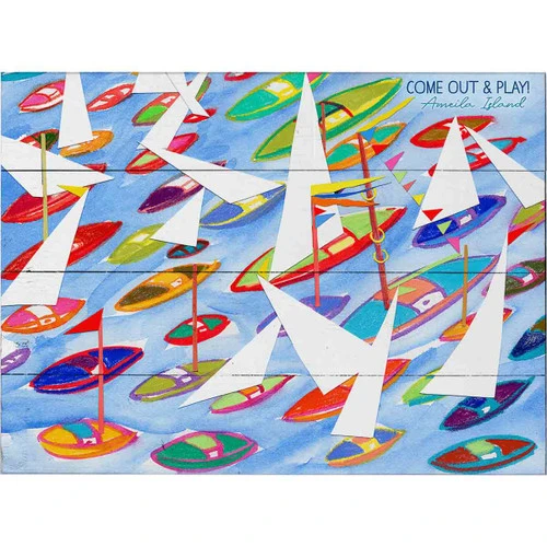 Give your living room a nautical update with the Come Out & Play Personalized Wall Art. Crafted with a plethora of vibrantly colored sailboats, this Personalized Wall Art makes a beautiful accent.