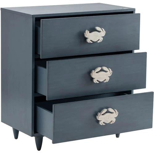 Decorate your bedroom in nautical style with the Crabbers Bay 3 Drawer Chest, embellished with an ocean-inspired blue finish and white crab drawer pulls.
