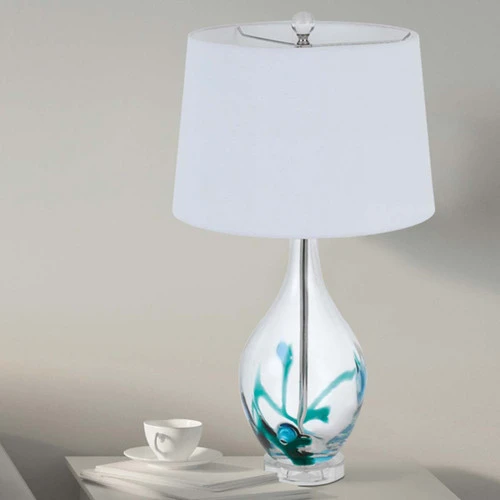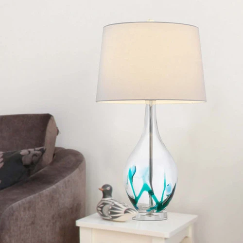 The Crystalline Blue Table Lamp is a sleek and lamp that adds style and functionality to any coastal home. Its clear glass base with aqua accents provides a pop of color while the triple brightness settings allow for customizable lighting options.
