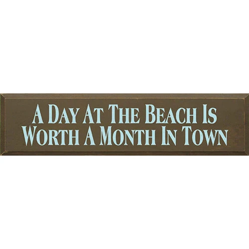 Introducing our Day At The Beach Wall Art, a charming distressed brown décor. The phrase “A Day At The Beach Is Worth A Month In Town” is beautifully written in a soothing light blue hue, capturing the allure of the sea.