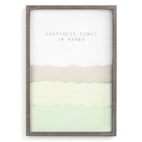 Accent your living room with the Happiness Wood Wall Art. This wood wall art features abstract waves and an inspirational phrase for a seaside addition to your home.