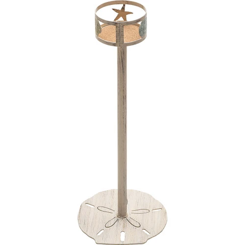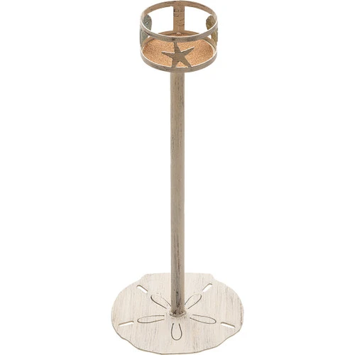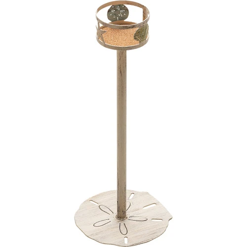 A Bella Coastal Decor Exclusive – Make a statement in your patio with the Iron Drink Holder Stand w/ Multi Shell Accent, featuring a seashell, sand dollar and starfish border in coastal blue, green and yellow shades for beachside style.