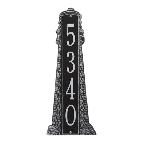 Add luxury to your beach house with the Large Lighthouse Vertical House Number Plaque – Black & Silver. This address plaque features a vertical lighthouse shape for classic nautical style.