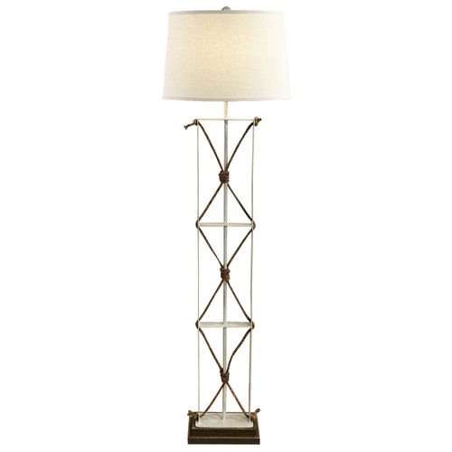 Bring nautical style to your den with the Mariner’s Floor Lamp with Brown Wood Base. This floor lamp has a natural linen shade and weathered ecru iron with knotted rope accents atop a brown, solid wood base.