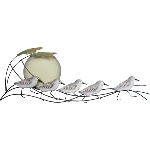 Bring coastal style to your den with the Moonlight Sea Birds Wall Art. This wall art has hand-carved sanderlings going for a stroll.