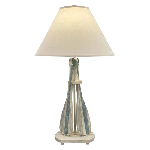Add a touch of coastal charm to your space with the Paddle Duo Table Lamp. The lamp features a unique striped design in soothing tones, perfect for creating a relaxing atmosphere in any room.