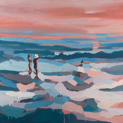 Showcase your coastal style with the Pink Sunset Canvas Wall Art, designed with breathtaking shades of pink and blue in an abstract ocean view.