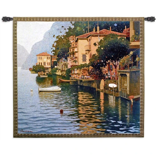Give your family room a coastal update with the Reflejos en el Lago Wall Tapestry. Crafted with a beautiful Venetian harbor scene, this wall tapestry makes a beautiful accent. Hanging rod not included.