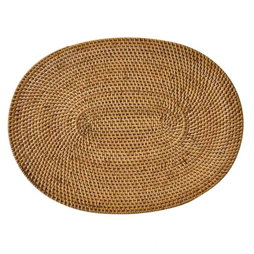 The Rounded Woven Placemat is a stylish and functional addition to your dining table. Its natural color adds an earthy touch, while the durable rattan material ensures long-lasting use.