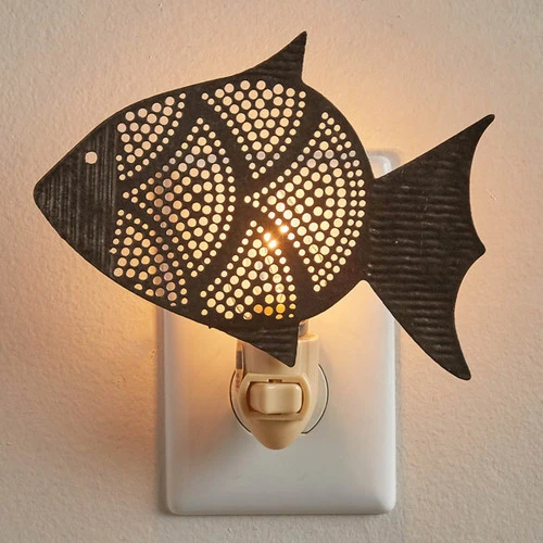 Add style to your hallway with the Rustic Fish Nightlight. This nightlight features a charming metal fish for waterside flair.