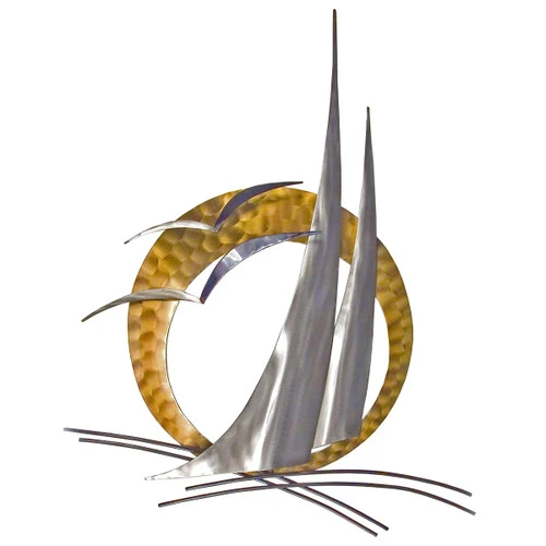 Create a nautical look in your home with sails and seagulls in front of a yellow sun on the Sail’n Wall Art.